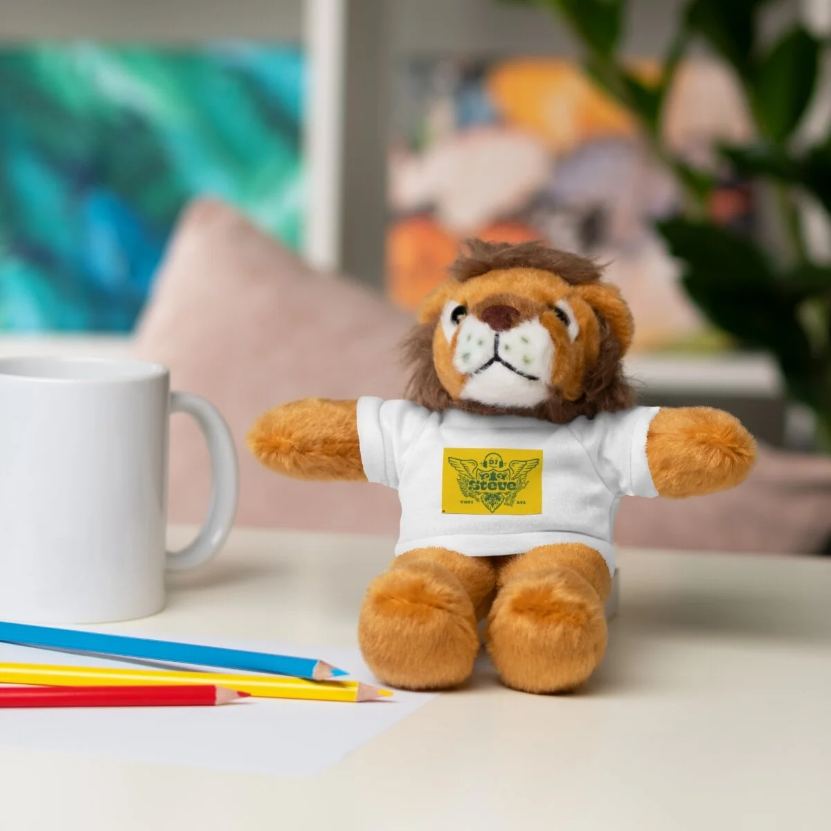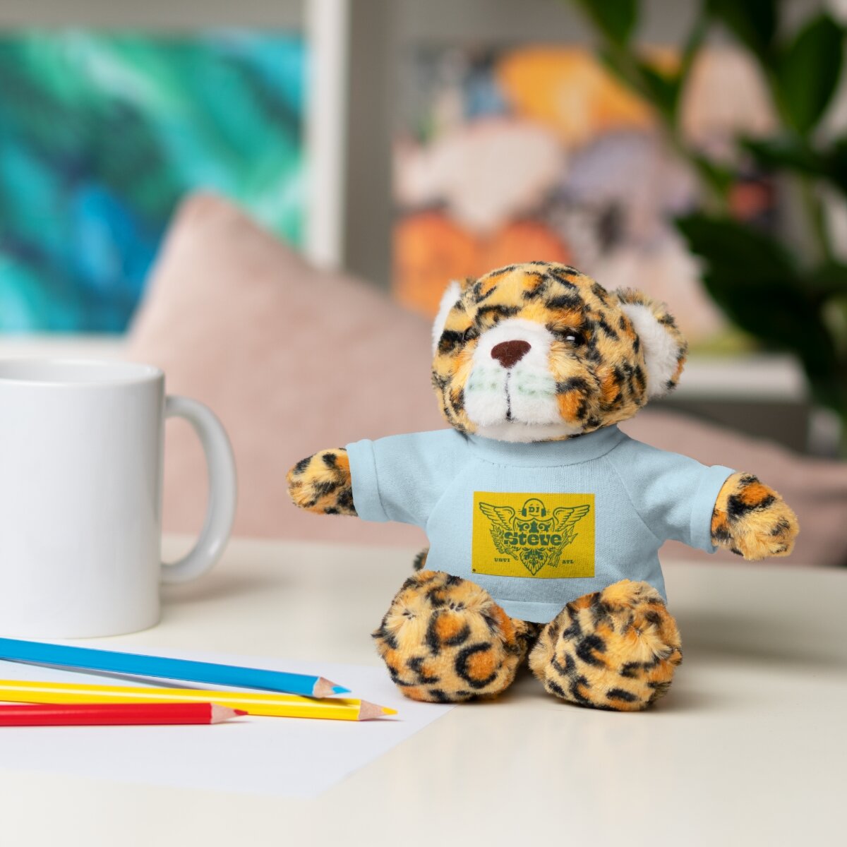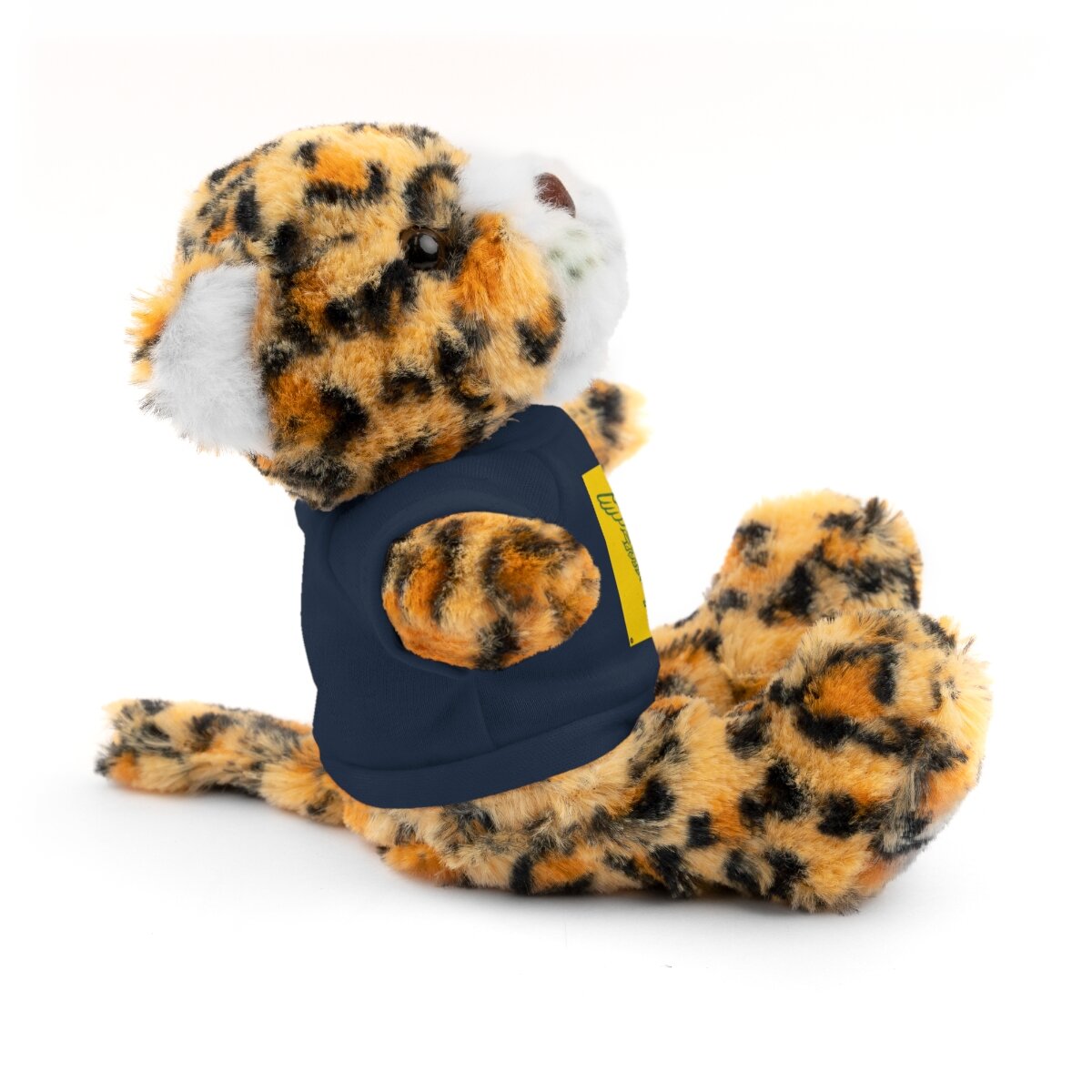 Created to put ear-to-ear smiles on any child, these stuffed animals come with a playful attitude and customizable tees. Each plushie is 8" tall, features polyester and plastic pellet stuffing, while their tees are 100% cotton. Perfect for ages 3+. Available animals: Panda, Lion, Bear, Bunny, Jaguar, and Sheep.
